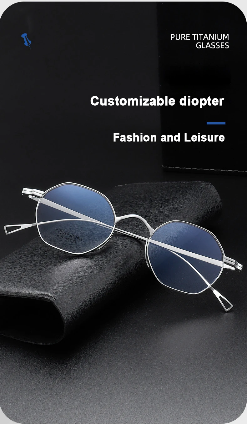 Japanese Luxury Brand Replication Retro Polygonal Small Eyeglasses Men Women Pure Titanium Glasses Frame Korean Japan Style